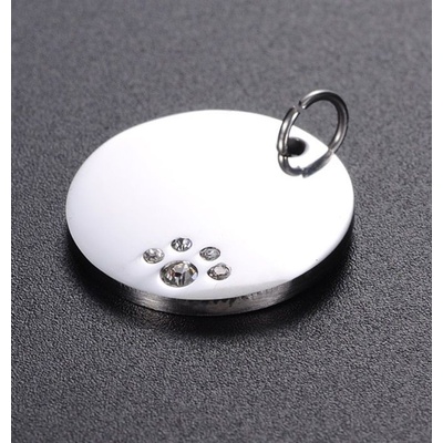Luxusní přívěsek na obojek z chirurgické oceli - kolečko zdobené tlapkou s čirými zirkony.Materiál: chirurgická ocelPovrchová úprava: leskláRozměr: 20 mmLuxusní přívěsek na...