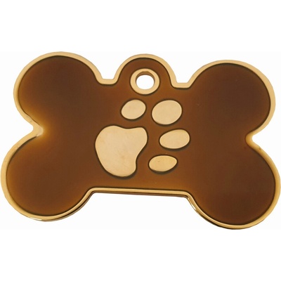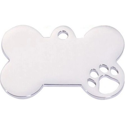 Praktický funkční šperk (přívěsek) pro vaše zvířátko. Ocelová destička - psí známka ve tvaru kosti. Zdobená tlapkou.Destička je vyrobena z chirurgické oceli a má lesklou...