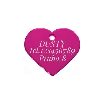 Hliníková identifikační psí známkaZa příplatek lze jednostranně nebo oboustranně opatřit destičku rytinou textu nebo drobným obrázkemPřívěšek má povrchovou úpravu v růžové barvě