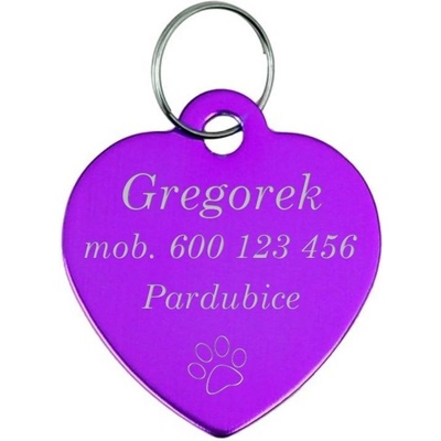 Hliníková identifikační psí známka ve tvaru srdíčka Za příplatek lze jednostranně nebo oboustranně opatřit destičku rytinou textu nebo drobným obrázkem Přívěšek má barevnou...
