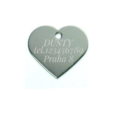 Hliníková identifikační psí známka ve tvaru srdíčka Za příplatek lze jednostranně nebo oboustranně opatřit destičku rytinou textu nebo drobným obrázkem