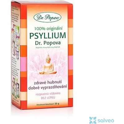 Dr.Popov Psyllium indická rozpustná vláknina 50g Psyllium, doplněk stravy, je rozpustná vláknina pocházející z Indie. Změkčuje stolici a zvětšuje její objem, tudíž vede ke...