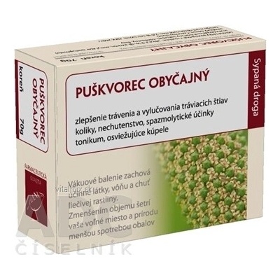 Puškvorec obecný kořen (jemně mletý) 100g Podporuje normální trávení a osvěžuje tělo. Dle nařízení Komise EU č. 432/2012, nemůžeme uvést všechny účinky tohoto výrobku, ale...