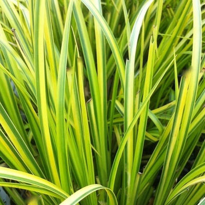 Acorus gramineus ‘Argenteostriatus’ puškvorec trávovitý Elegantní, jemná, nízká rostlina s výrazně světle panašovaným listem. Ideální pro vlhčí partie zahrady, okraje...