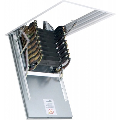 Stahovací půdní schody Fakro LSF s kovovým žebříkem Půdní schody kovové protipožární stahovací FAKRO LSF-300. Půdní schody LSF s protipožárním poklopem EI 60. Protipožární...