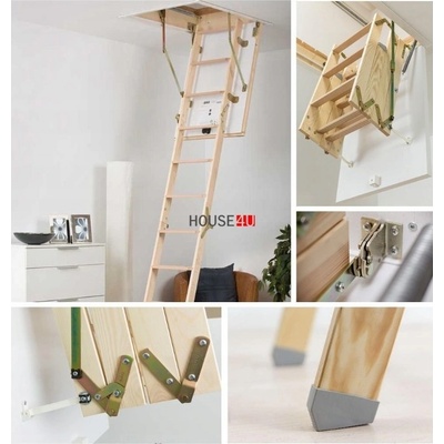 Zateplené půdní schody typu Maxi jsou vybaveny třídilným skládacím dřevěným žebříkem a madlem. Schody jsou určeny pro podlaží o maximální výšce 280 cm. Zateplené víko s dvojitým...