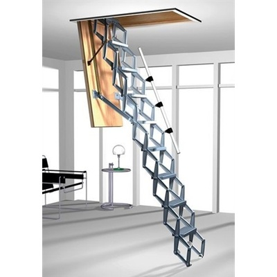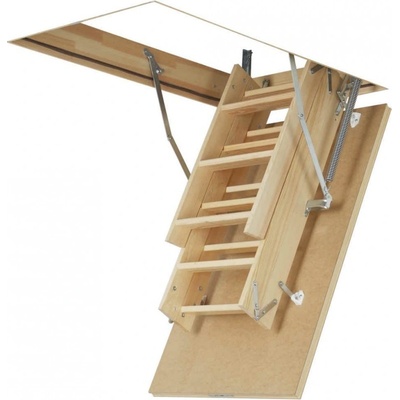 Skládací kovové půdní schody FAKRO LMS Smart kde je termoizolační poklop a skříň z borovicového dřeva. PŘÍSLUŠENSTVÍ V CENĚ: béžový poklop se zámkem, patky, těsnění,...