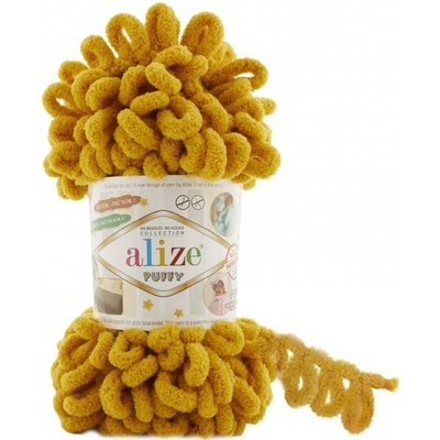 příze Puffy 02 hořčicová. Silná žinylková příze s velkými oky pro pletení na rukou. Barva: hořčicová. Složení: 100% mikropolyester. Návin: cca 9 m. Hmotnost: 100...