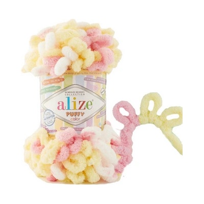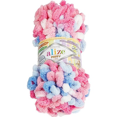 Příze Alize Puffy Color 6369 je silnější, ale zároveň velmi jemná a hebká žinylková příze s velkými oky určená pro pletení na rukou.
