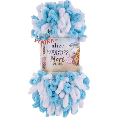 Dvoubarevná hřejivá žinylková příze je vyrobena ze 100% mikropolyesteru. Hmotnost jednoho přadénka je 250 g a návin 11 m. Puffy More Plus je silnější verze příze Alize Puffy More.