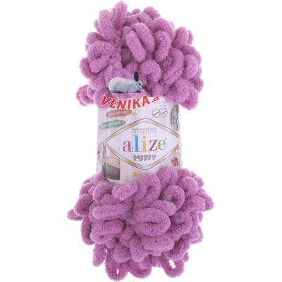 Pletací příze Alize Puffy je silná žinylková příze s velkými oky pro pletení na rukou. Z této příze vyrobíte např. krásné měkounké deky přehozy na postele šály ,deka 100x100cm...