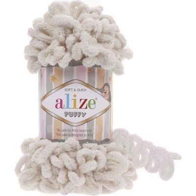 Alize Puffy 72 Béžová je heboučká silná kroucená příze. Velmi rychlé a snadné pletení pouze za pomoci svých prstů Dá se použít na deky, lemy a hračky 100% mikropolyester Gramáž:...