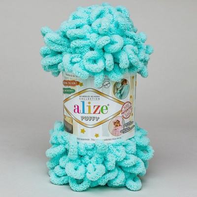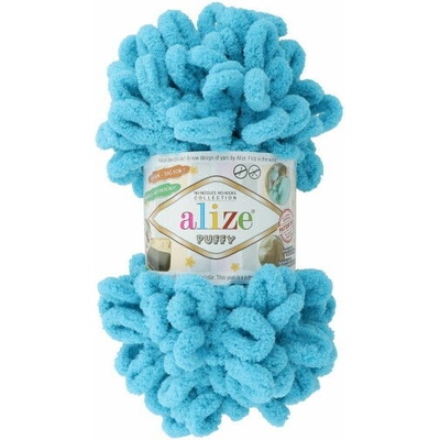 Alize Puffy 16 tm. Tyrkysová je heboučká silná kroucená příze. Velmi rychlé a snadné pletení pouze za pomoci svých prstů Dá se použít na deky, lemy a hračky 100%...