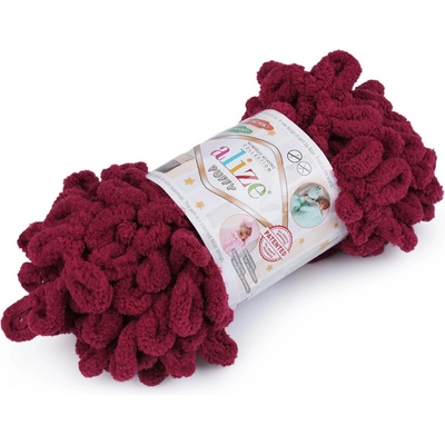 Příze Alize Puffy je měkká, chlupatá žinylková příze s velkými očky. Na pletení nepotřebujete jehlice ani háček - proplétají se jednotlivá očka. Je vhodná na pletení dek, šálů...