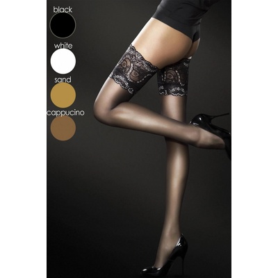 Dámské samodržící punčochy z příze typu lycra zakončené v horní části jemnou krajkou se dvěma silikovými pásky. Pásky na vnitřní straně punčochy zaručující správné držení na...