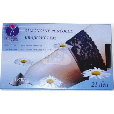 Dámské samodržící punčochy z příze typu lycra zakončené jemnou 14 cm širokou krajkou. Na vnitřní straně krajky jsou dva silikonové pásky zaručující správné držení punčochy na...