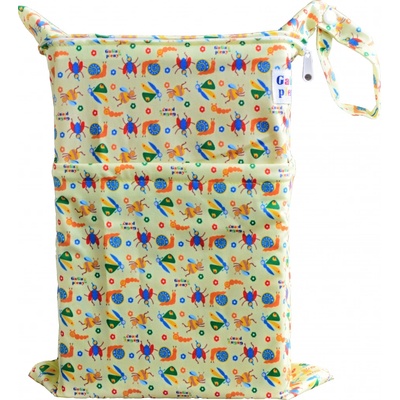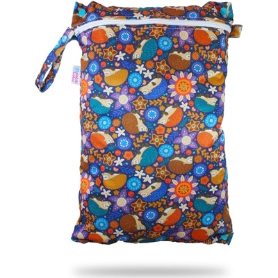 Praktický pytel na pleny se dvěma oddělenými kapsami (suchá/mokrá) s PUL zátěrem. Nepropustí vlhkost ani zápach, je lehký, omyvatelný, se zipy a poutkem na zavěšení.