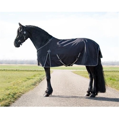 Nepromokavá deka bez zateplení pro větší koně značky QHP 175/225 cm. Speciální střih pro fríské a barokní koně. Širší u krku a hrudníku. Vodní sloupec a vysoká prodyšnost deky:...