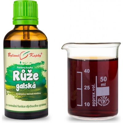 Růže galská tinktura 50 ml - Bylinné Kapky Růže galská (bylinná tinktura - Pavlovy bylinné kapky). Přírodní bylinný extrakt z květu léčivé rostliny růže galské pro normální funkce dýchacího systému. Tinctura Rosae flos. Tincture French rose flower. Růže galská...