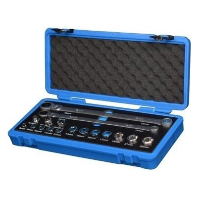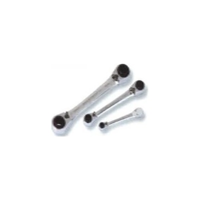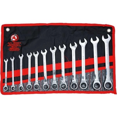 Sada klíčů s jednou stranou zakončenou ráčnovým okem a druhou klasickým plochým klíčem. Obsaženo je celkem 8 ks klíčů s velikostmi od 8 do 22 mm.
