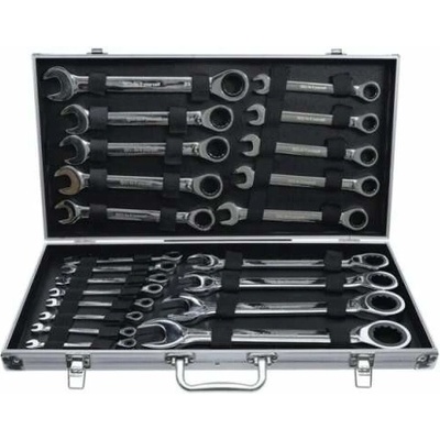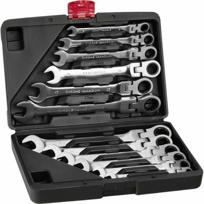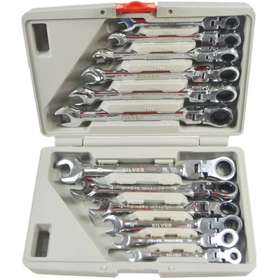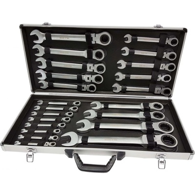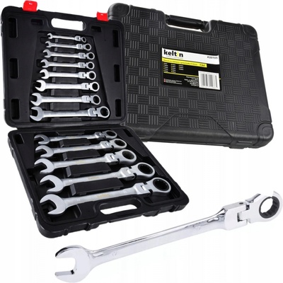 Sada plochých a očkových ráčnových klíčů s kloubem, pro snažší manipulaci v hůře přístupných místech. Klíče jsou vyrobeny z kvalitní chrom-vanadové oceli. Sada obsahuje klíče o...