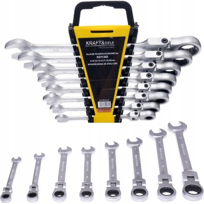 Ráčnové klíče očkoploché s kloubem sada 8ks 8-22mm KRAFT&DELE Sada očkoplochých ráčnových klíčů s kloubem od značky Kraft&Dele obsahuje 8 ks klíčů o různých velikostech. Sada...