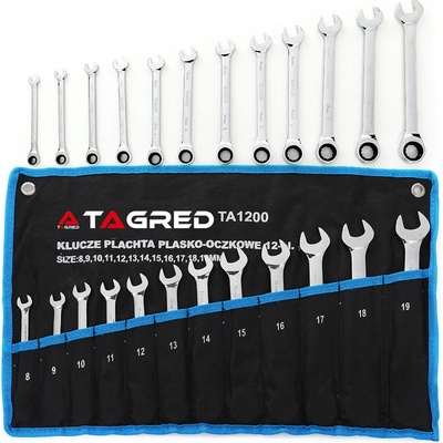 Sada Klíčů s Ráčnou SADA OBSAHUJE KLÍČE: - 8 mm - 9 mm - 10 mm - 11 mm - 12 mm - 13 mm - 14 mm - 15 mm - 16 mm - 17 mm - 18 mm - 19 mm CHARAKTERISTIKA: - Klíče...