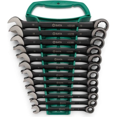 Očkoploché ráčnové klíče 8 ÷ 19 mm Černé SATA ST08032 (Sada 12 dílů) Sada metrických kombinovaných ráčnových klíčů SATA Tools Klíče SATA se dodávají v základních standardních...