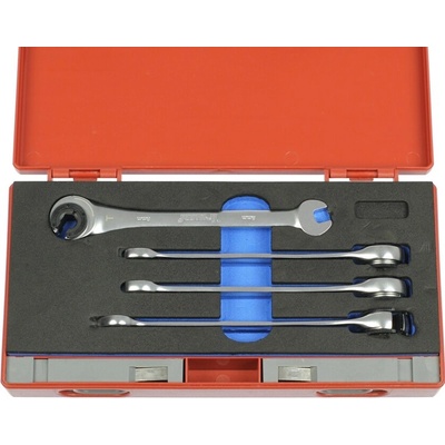 Očkoploché klíče s ráčnou a přepínáním směru vlevo/vpravo, vyhnuté očko o 15 stupňů, sada 8 kusů ve vinylovém obalu – 4Czech 4CZ-277R-508 Prakticky poskládaná souprava klíčů pro...
