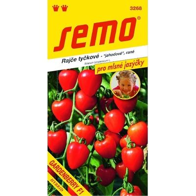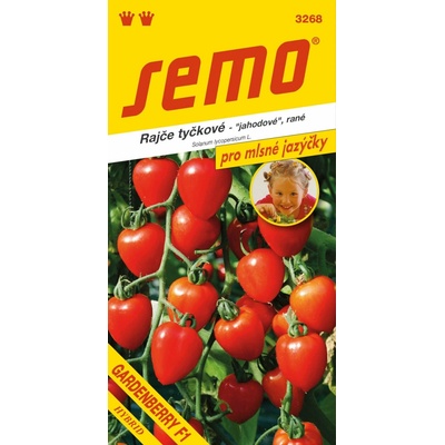 SEMO Rajče GARDENBERRY F1 jahodové Rajče tyčkové Gardenberry F1Lahůdkové tyčkové rajče z japonského šlechtění s drobnými plody ve tvaru jahod o váze 15 – 20 gramů jsou dužnaté a velmi aromatické.