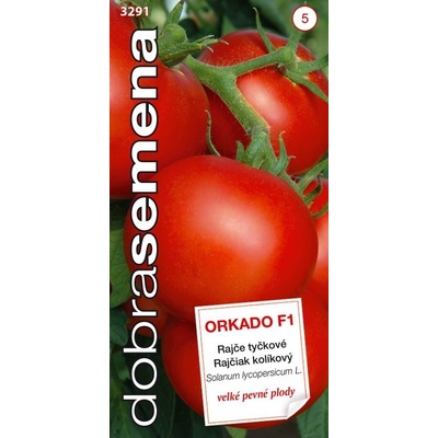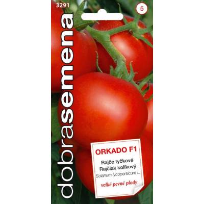 \nLycopersicon esculentum Mill. / RajčiakPopis: ORKADO F1 - poloraný tyčkový hybrid pro pěstování ve fóliových krytech i na venkovním záhonu. Plody jsou kulovité, větší, o hmotnosti 130 - 150 g. Jsou
