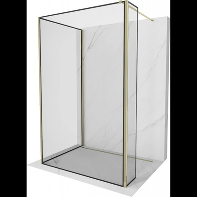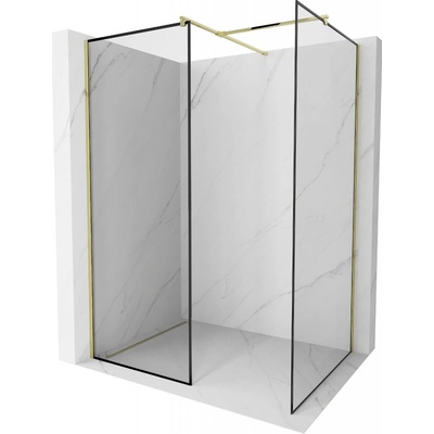 Specifikace produktu: Šířka: 140x100 cm (stěna X - 140 cm, stěna Y - 100 cm) Výška: 200 cm Montáž: Univerzální Barva skla: Černý vzor Úprava: Zlata Typ skla: Temperované...