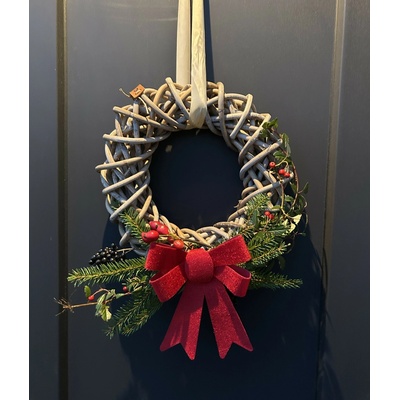 Tento vánočně zdobený věnec z přírodních materiálů bude krásnou ozdobou na vchodových dveřích i v interiéru. Věnec je kvalitně zpracovaný a dekorovaný přírodními větvičkami, šiškami, suchými listy a doplněný červenými dřevěnými květy a kouličkami. Vneste kousek...