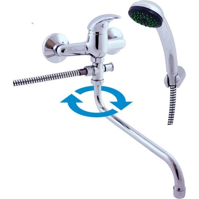 Vodovodní baterie vanová nástěnná s plochým otočným ramínkem, sprchou a pevným držákem. tato baterie je vybavena keramickou kartuší o průměru 35 mm KA3502 v baterii je...
