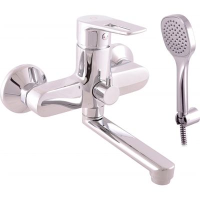 Vodovodní baterie pro vanu a umyvadlo nástěnná s kulatým ramínkem, sprchou a pevným držákem. tato baterie je vybavena keramickou kartuší o průměru 35 mm KA3502E ramínko SR0200E...