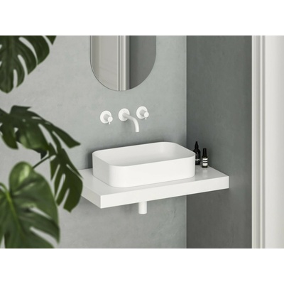 Umyvadlo na desku v bílé matné barvě bez otvoru pro baterii, bez přepadu od výrobce Ravak ze série Ceramic Slim. Rozměry produktu jsou 55x37x12 cm.