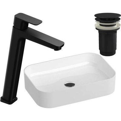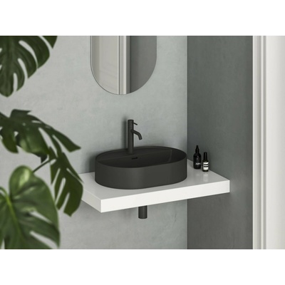 Umyvadlo Ceramic Slim Shelf O 55 barva matná černá materiál sanitární keramika rozměry 550 x 400 x 120 mm oválný tvar s otvorem pro baterii s přepadem s odkládací plochou...