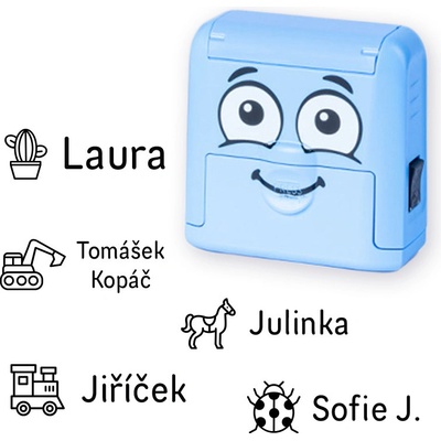 Veselé razítko na textil ve třech barvách, se spoustou motivů a se jménem dítěte. Jednoduchý a rychlý způsob označení dětského oblečení. Podepište dětem oblečení do školky, na tábor nebo školu v přírodě jedním stisknutím razítka a zabraňte tak nechtěným ztrátám nebo...