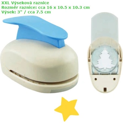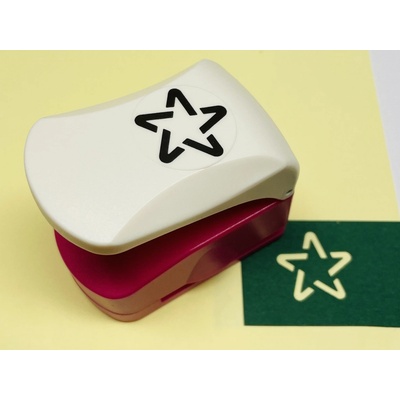 Raznice ozdobná 22mm - Hvězda Ozdobný děrovač k vyražení motivu na horní stlačitelné rukojeti, do papíru, fólií a jiných materiálů. Vhodný na papír do gramáže 220g/m2, pěnovou gumu moosgummi, ale nehodí se na filc ( chloupky z něho zanáší mechaniku děrovače) Plastový...