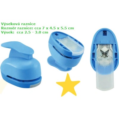 Raznice ozdobná 22mm - Hvězda Ozdobný děrovač k vyražení motivu na horní stlačitelné rukojeti, do papíru, fólií a jiných materiálů. Vhodný na papír do gramáže 220g/m2, pěnovou...