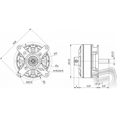 Stejnosměrný motor velikosti 540 s 35 závity. Napájecí napětí až 5 - 8 čl. NiMH nebo 2 čl. LiPol. Průměr hřídele je 3.175 mm.