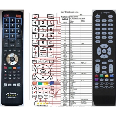 Náhradní dálkové ovládání je určené pro tyto modely:22P406 STC LED, 32A325 S, 32E384, 32E425 WEB, 32N625T, 40E384, 43E384, 48E276, 50425, THV32P452T, TVF 22282, TVF22266,...