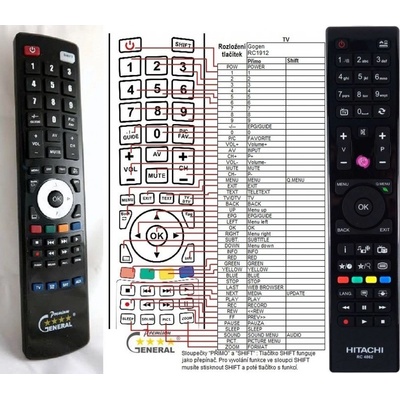 Náhradní dálkový ovladač HITACHI RC4862. Je určen pro tyto modely HITACHI:22HYC06, 24HBC05A, 24HE1000, 24HXC05, 24HYC05, 28HYC05, 32HB6T41, 32HBC01, 32HBC01A, 32HBC01B,...