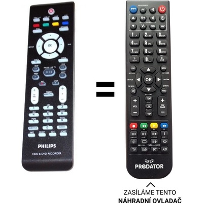BEZ ZADÁVÁNÍ KÓDŮ Náhradní dálkový ovladač philips pro HDD&DVD recorder DVDR3570H/31, DVDR3575H/31, DVDR3577H/31, DVDR3590H/31, DVDR3595H/31, DVDR3597H/31, HTS5710H/31,...