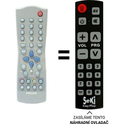 POUZE ZÁKLADNÍ FUNKCE. Náhradní dálkový ovladač RC283509, 313922885291 313922885292, RCL9EA pro televizory PHILIPS: 17PT1565/58, 14PT1565, 21PT1654/58...