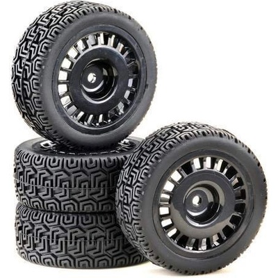 Sada 4ks pneumatik 1:10 včetně disků pro sportovni a rekreační ježdění Šířka 25mm, průměr 68mm Šestihranný unašeč 12 mm Standardu Tamiya Balení obsahuje 4 ks.Vzorek "Rally...