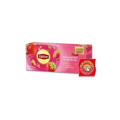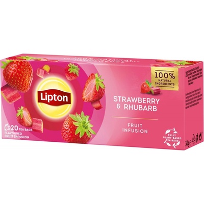 Ovocný čaj Lipton - jahoda a rebarbora, 20x 1,7 g. Ovocný čaj s příchutí jahod a rebarbory vám přináší sílu přírody a chuti Porcovaný: 20 sáčků x 1,7 g Složení:Ibišek, jahody...