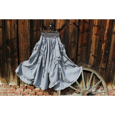 * šitá z lehkého materiálu, prodejce tvrdil, že bavlna, ale nevim nevim, je to pružné, vzor je tkaný, oboustranný* v pase řešena úpletovým patentem, aby se sukýnka přizpůsobila...