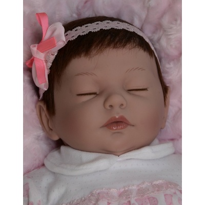 Reborn miminko holčička Valentina je 46 cm dlouhá, váží 1,750 kg. Má látkové tělíčko, končetiny a hlavičku z měkčeného vinylu, má krátké hnědé vlásky, jako skutečné miminko....