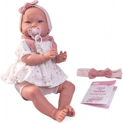 Reborn miminko holčička Nerea je 46 cm dlouhá, váží 1,750 kg. Má látkové tělíčko, končetiny a hlavičku z měkkého vinylu, má krátké tmavě hnědé vlásky, ozdobené čelenkou. Očička...